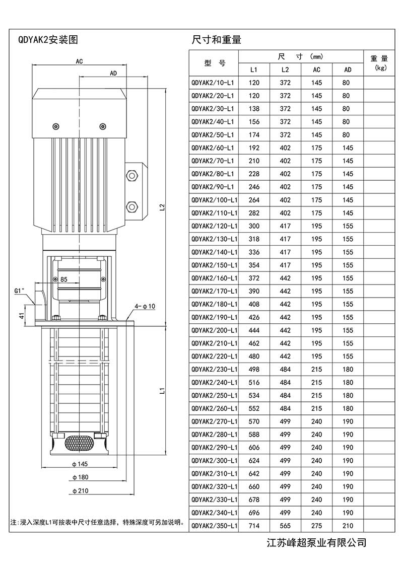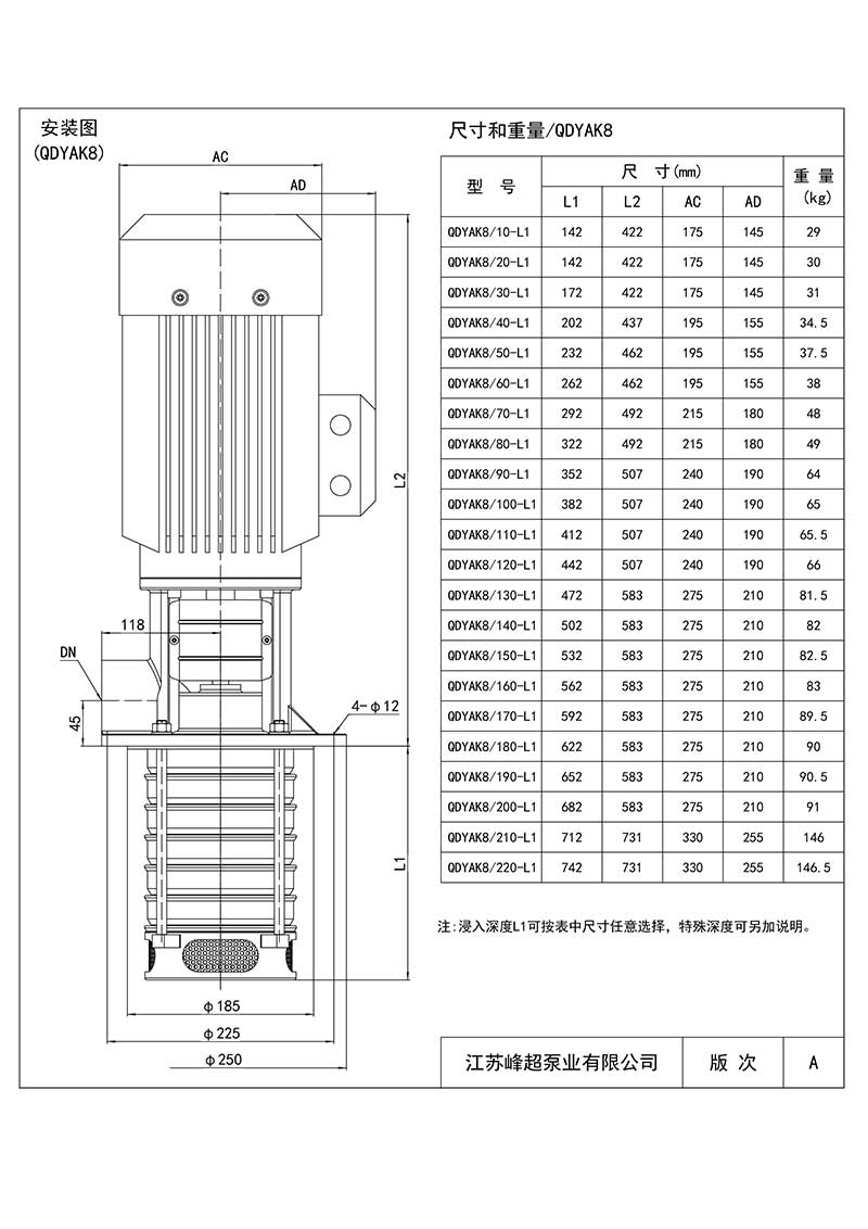 QDYAK8機床高壓泵性能和安裝尺寸: